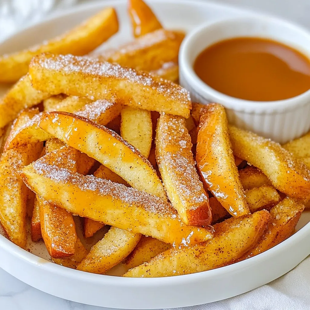 Presentation Tips: Present the crispy apple fries artistically on a serving plate alongside a small bowl filled with caramel sauce or creamy vanilla yogurt for dipping. For an added touch of elegance, sprinkle a light dusting of cinnamon and sugar over the top.