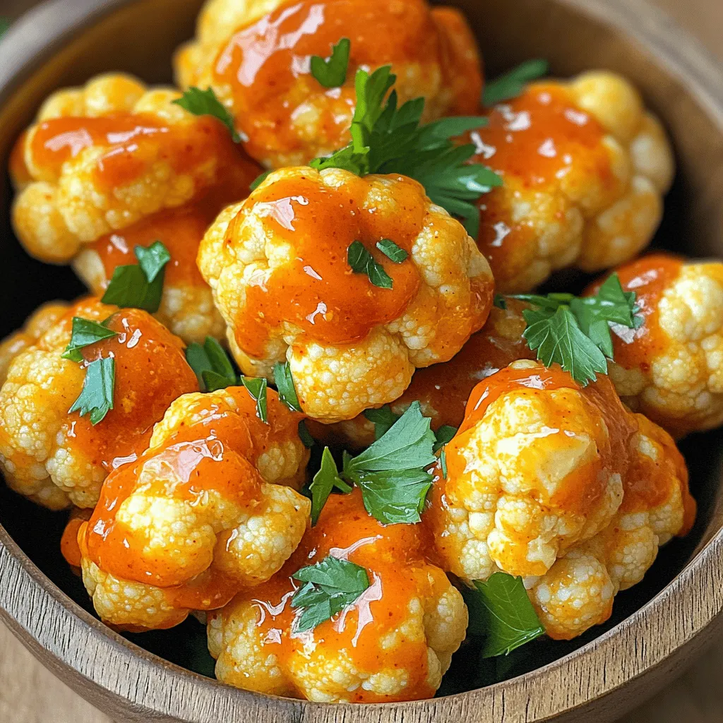 When the cauliflower bites are golden and crispy, transfer them to a bowl. Pour the buffalo wing sauce over them while warm. Toss gently to ensure each piece is coated well. The sauce gives them that signature spicy flavor.