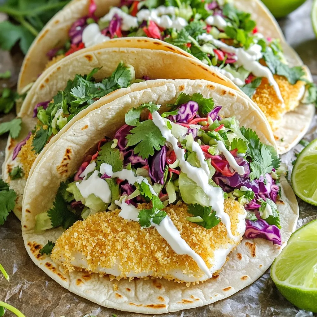 To make your fish tacos shine, focus on how you arrange them. Use a colorful platter. Place the tacos in a line or a circle. Add lime wedges and fresh cilantro between the tacos. This makes it look fun and inviting. You can also serve a small bowl of extra slaw and sauce on the side. Guests will love adding more to their tacos.