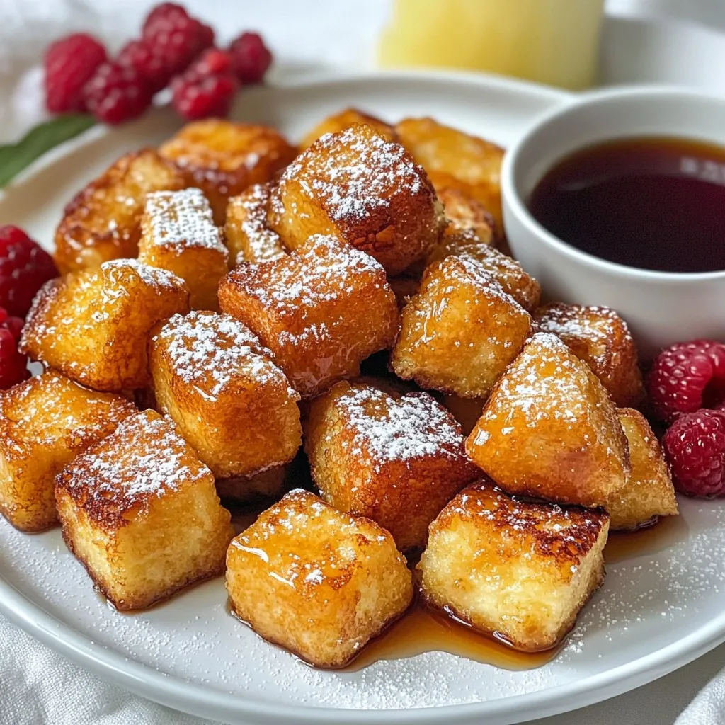 Dust the crispy French toast bites with powdered sugar and serve warm with maple syrup or fresh berries.