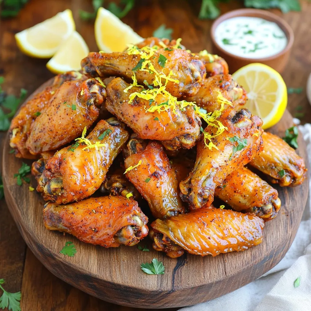 Next, you’ll need the marinade. Fresh lemon zest adds bright flavor. The juice brings a tartness that makes the wings pop. Black pepper gives heat, while garlic and onion powders add depth. Smoked paprika gives a nice color and a hint of smokiness. Sea salt enhances all the flavors.