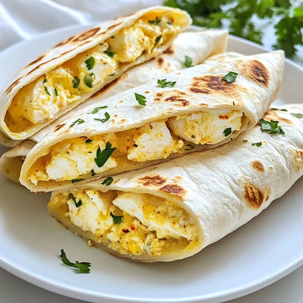 Delicious wraps filled with shredded chicken, cheese, and garlic, perfect for a quick meal.