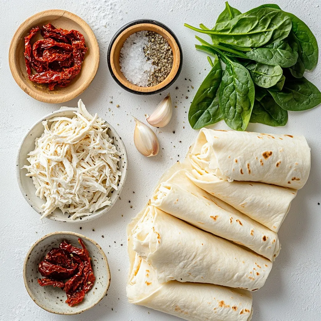 The wraps need flour tortillas. They hold everything together. Fresh spinach leaves add a pop of color and crunch. If you like, sun-dried tomatoes can give extra flavor. They add a sweet and tangy taste to your wraps.