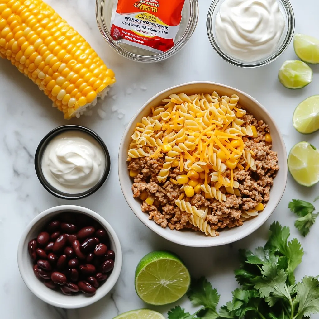 You can swap the ground beef for turkey for a lighter option. I like to use rotini pasta because the sauce clings to its curves. If you want a veggie boost, add more corn or beans.