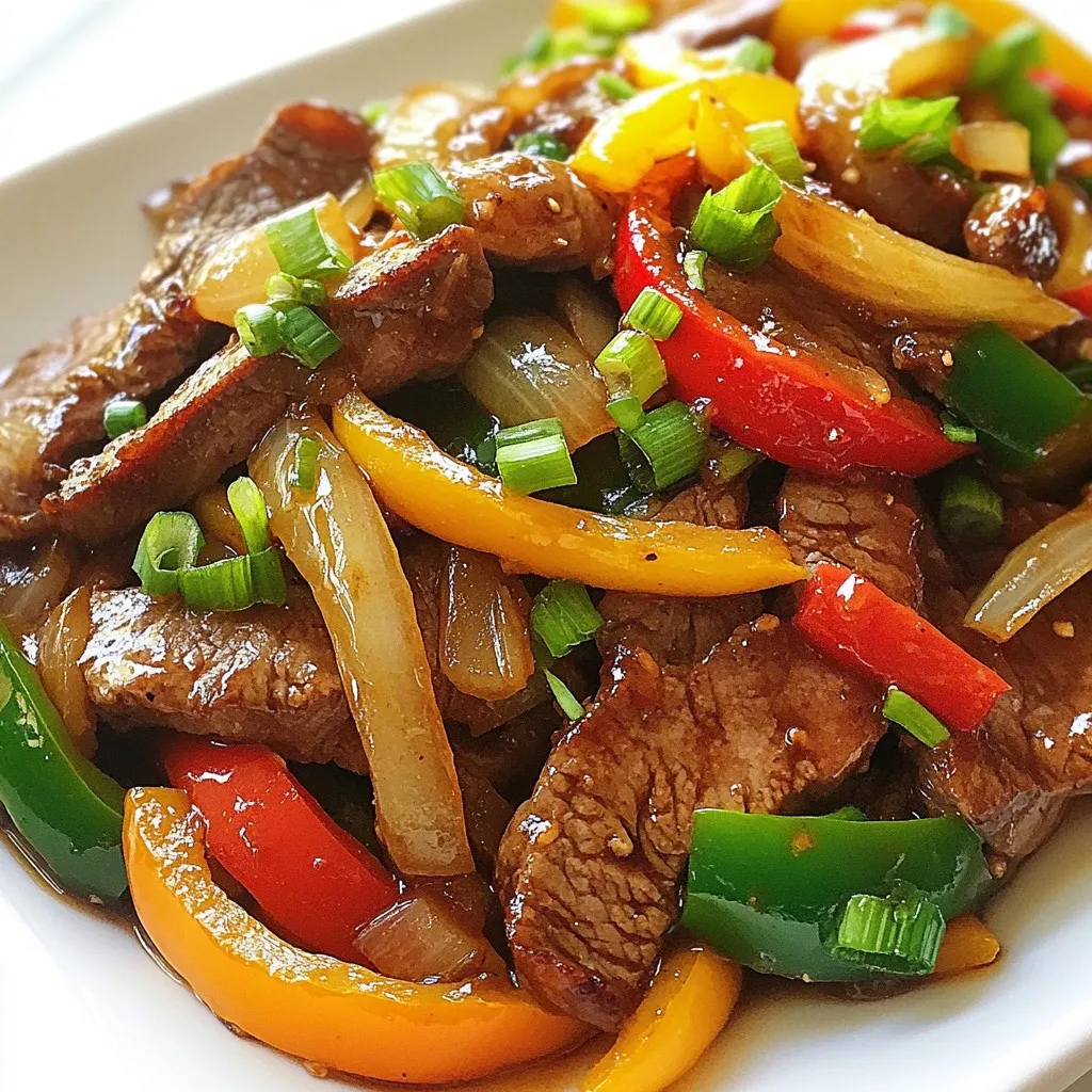 - 1 pound flank steak, thinly sliced against the grain - 1 bell pepper (choose red, green, or yellow), sliced into strips - 1 medium onion, sliced into rings - 3 cloves garlic, minced - 1-inch piece ginger, finely minced - 2 tablespoons soy sauce - 2 tablespoons cornstarch - 2 tablespoons vegetable oil - 1 tablespoon oyster sauce - 1 tablespoon sugar - ¼ cup beef broth - ¼ teaspoon black pepper You need fresh ingredients for this dish. Start with flank steak. It is tender and flavorful. Slice it thin against the grain. This helps it stay juicy. Next, grab a bell pepper. You can choose any color. Red, green, or yellow will work great. Slice it into strips. Now, take a medium onion. Slice it into rings for the stir-fry. The onion adds sweetness. You will also need garlic and ginger. Mince them finely. They give the dish its signature flavor. For the marinade, soy sauce is key. It adds saltiness and depth. Mix it with cornstarch for a nice coating. The vegetable oil helps everything cook evenly. Finally, the sauce needs oyster sauce for richness. Sugar helps balance the flavors. Beef broth adds moisture and flavor. Don’t forget black pepper for a hint of spice. These ingredients come together for a tasty meal. Prepare them fresh for the best results. {{ingredient_image_2}} - Combine steak with soy sauce and cornstarch. - Allow steak to marinate for 15 minutes. Start by taking your flank steak. Slice it thinly against the grain. This helps keep it tender. In a medium mixing bowl, add the sliced steak. Pour in the soy sauce and cornstarch. Mix well until each piece is coated. Let it sit for 15 minutes. This step boosts the flavor and makes the steak melt in your mouth. - Slice bell pepper and onion. - Mince garlic and ginger. While the steak marinates, turn your focus to the veggies. Grab a bell pepper and an onion. Slice the bell pepper into strips. Cut the onion into rings. Next, take 3 cloves of garlic and mince them finely. Don’t forget about the ginger. You only need a small piece, about an inch. Mince that too. Keep these veggies separate on a plate until you are ready. - Heat the oil. - Sear the steak. - Stir-fry the vegetables. - Add sauce and combine. Now, let's get cooking! In a large skillet or wok, heat 2 tablespoons of vegetable oil over medium-high heat. Wait until the oil is hot but not smoking. Carefully add the marinated steak. Spread it out evenly in the pan. Let it sear for about 2-3 minutes. You want a nice crust on one side. After that, stir-fry the steak for another minute until it turns brown and is cooked through. Remove the steak and place it on a plate. In the same skillet, toss in the sliced onion and bell pepper. Stir-fry them for 2-3 minutes. You want them to be tender but still crunchy. Next, add the minced garlic and ginger. Stir for 30 seconds until fragrant. Return the cooked steak to the skillet. In a small bowl, mix the oyster sauce, sugar, black pepper, and beef broth. Pour this sauce over the steak and veggies. Toss everything together. Cook for another 2 minutes until the sauce thickens and coats every piece. Now you're ready to serve! Choosing flank steak is key. This cut is lean, tender, and full of flavor. Other cuts may not give you the same taste. When slicing, always cut against the grain. This means you go across the lines of muscle. Doing this makes the meat more tender and easier to chew. To make your dish pop, think about adding more veggies. Try snap peas, mushrooms, or carrots. These add color and crunch. You can also adjust your sauce. If you like it sweeter, add more sugar. If you want more depth, increase the oyster sauce. This is your dish, so make it your own. Getting the right doneness is important. For medium-rare, aim for 130°F. Use a meat thermometer to check. Avoid overcooking the steak. Cook it just until it's browned. Then, remove it from the heat. The meat will continue to cook a bit after you take it off the stove. Remember, you want it juicy and tender—not tough and dry. Pro Tips Slice Against the Grain: Cutting the flank steak against the grain helps to break down the muscle fibers, resulting in a more tender bite. Use High Heat: Cooking over high heat allows for a great sear on the steak and keeps the vegetables crisp, enhancing both texture and flavor. Let It Rest: After searing the steak, let it rest for a few minutes before slicing. This helps retain the juices, making the meat more flavorful. Add Spice: For an extra kick, consider adding some sliced jalapeños or a dash of chili flakes when stir-frying the vegetables. {{image_4}} You can switch flank steak for chicken or tofu. Chicken works well when sliced into thin strips. Use skinless chicken breast or thighs for the best flavor. Tofu is a great plant-based option. Press it to remove excess water, then cut it into cubes. Marinate it just like the beef to soak up those great flavors. Feel free to change up the veggies. Broccoli adds a nice crunch and color. Just chop it into small florets and add it with the bell peppers. Snap peas are another tasty choice. They add sweetness and a crisp bite. Toss in any veggies you like for a fun twist! If you love heat, make it spicy! Add chili flakes or a splash of hot sauce to the sauce mix. Start with a little and taste as you go. You can also toss in sliced fresh chilies during the stir-fry. This will give it a nice kick that wakes up your taste buds! To store your Chinese pepper steak and onions, first let it cool. Place it in an airtight container. This keeps it fresh longer. It lasts in the fridge for up to three days. Make sure to label the container with the date. This helps you track how long it has been stored. If you want to freeze the dish, first let it cool completely. Use a freezer-safe container or a zip-lock bag. Press out as much air as possible to prevent freezer burn. This dish can last up to three months in the freezer. When you're ready to eat, thaw it overnight in the fridge. Reheat it in a pan over med
