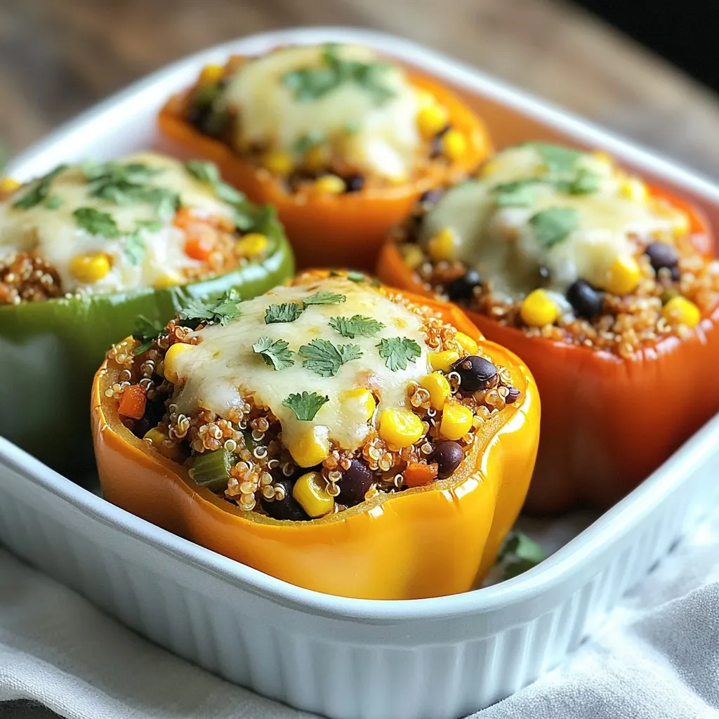 Delicious bell peppers filled with a savory quinoa mixture, perfect for a healthy meal.