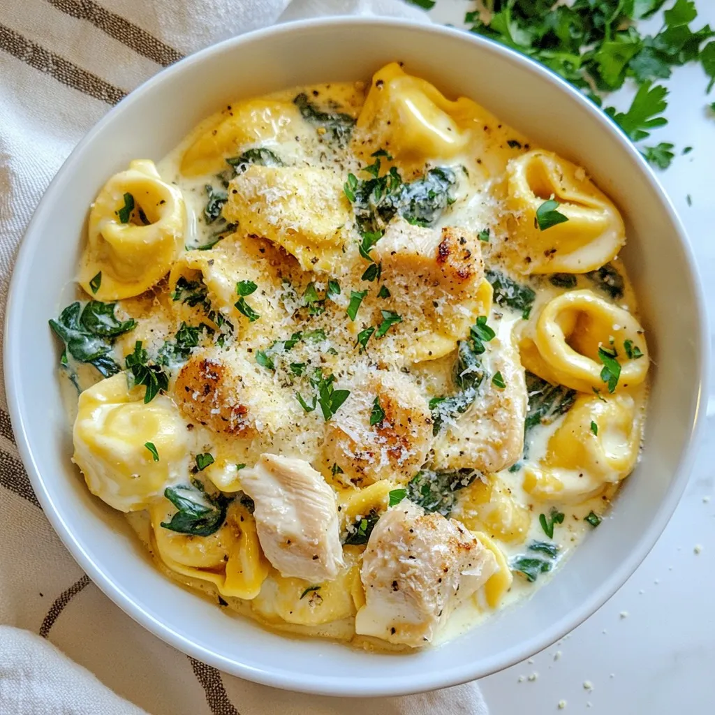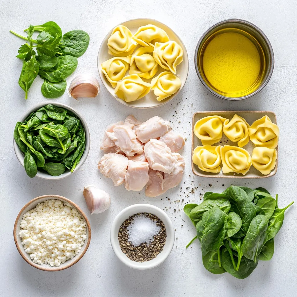 Gather these ingredients for a creamy and rich meal. The cheese tortellini gives the dish its unique taste. Diced chicken breasts provide protein and flavor. Olive oil helps cook the chicken, while garlic adds a nice aroma. Heavy cream and freshly grated Parmesan cheese make the sauce smooth and rich. Fresh spinach gives a pop of color and nutrition. Italian seasoning, salt, and pepper add depth to the taste. Finally, fresh parsley is perfect for garnish. You can switch up some ingredients based on what you like or have at home.