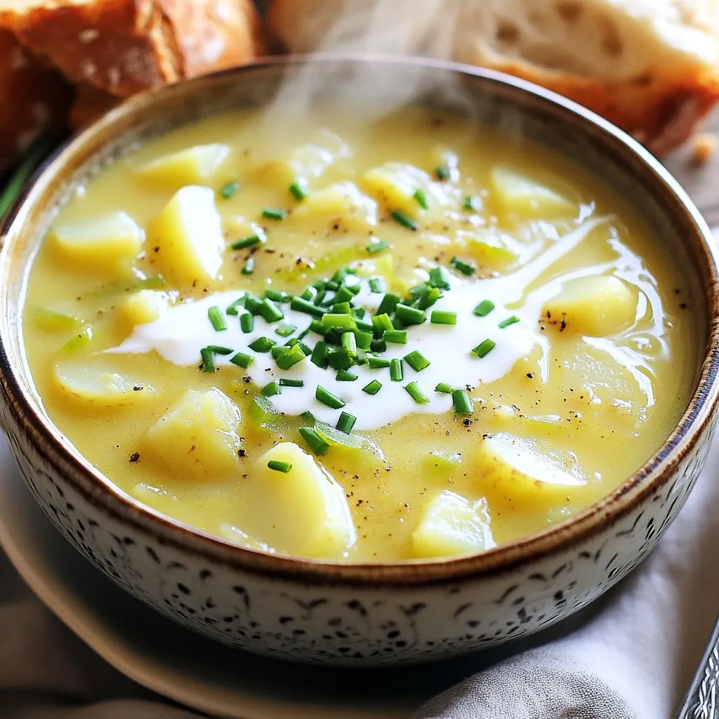 Serve your soup hot in deep bowls for a cozy feel. Garnish with fresh chives for a pop of color. A drizzle of cream adds a nice touch too. Pair the soup with crusty artisan bread. It’s perfect for dipping and makes a great meal. For a bit of crunch, serve with a simple green salad on the side.
