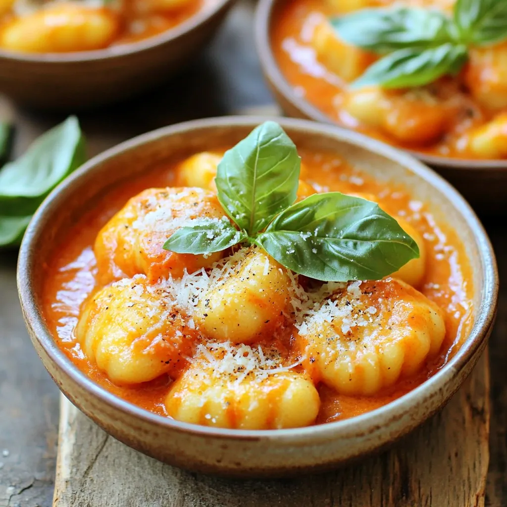Gathering the right ingredients is key to making creamy roasted red pepper gnocchi. You can use store-bought gnocchi for speed or make your own for fun. The two large red bell peppers give the dish its vibrant color and sweet taste. Heavy cream makes the sauce rich and luscious. The freshly grated Parmesan cheese adds a savory touch. Olive oil and minced garlic bring depth of flavor. Smoked paprika adds a unique, smoky taste, while salt and pepper balance the dish. Fresh basil leaves are perfect for a bright, finishing touch.