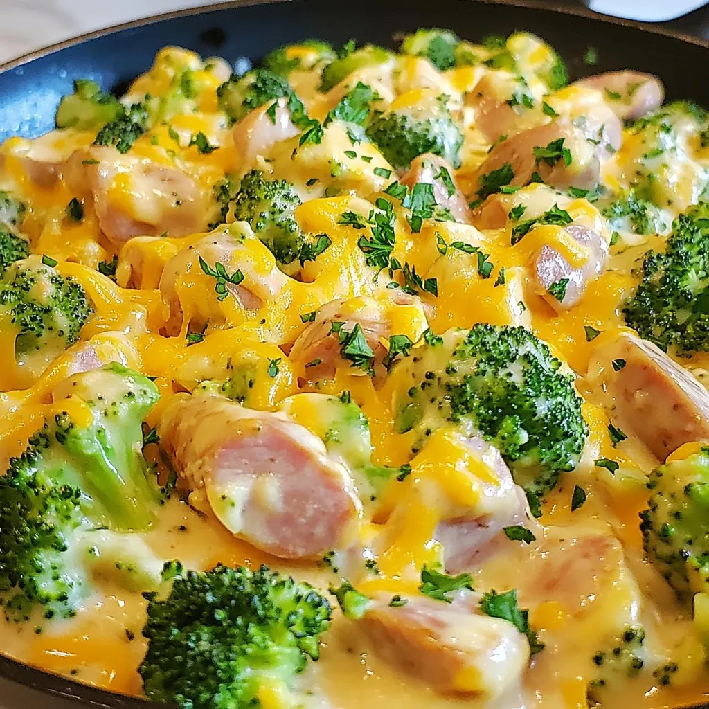 A delicious and creamy skillet dish featuring turkey kielbasa and broccoli, perfect for a quick weeknight meal.