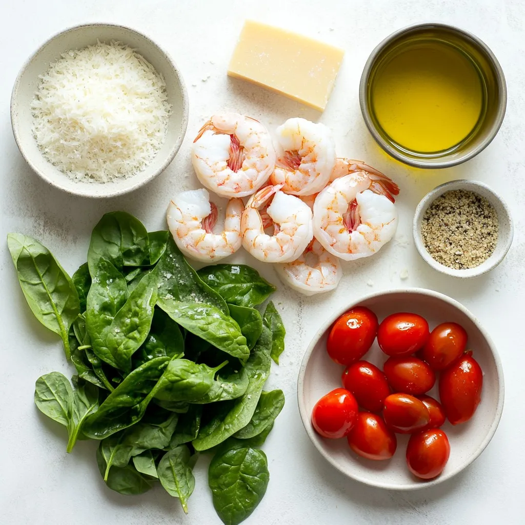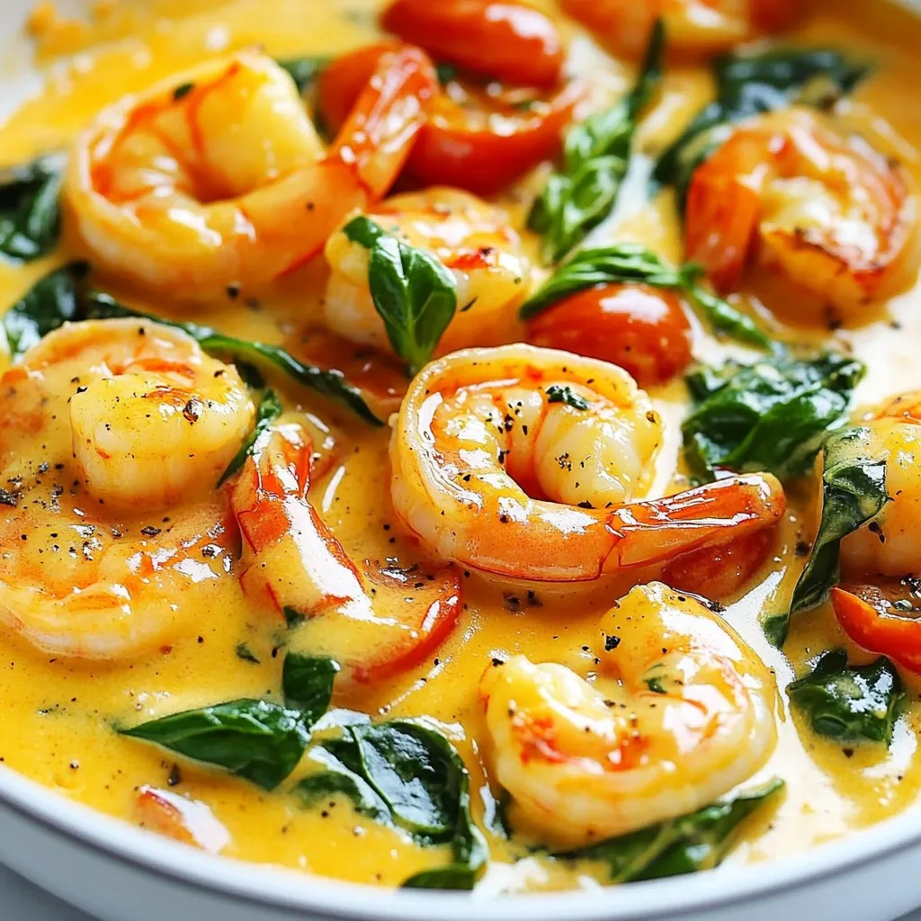 A delicious and creamy shrimp dish with cherry tomatoes and spinach, perfect for a quick weeknight dinner.
