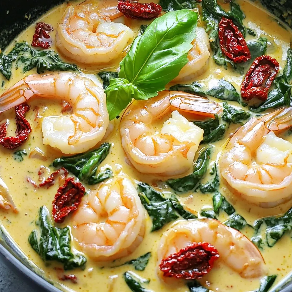 Gather these ingredients before you start. The large shrimp bring a nice texture to the dish. Olive oil helps sauté the garlic and sun-dried tomatoes, adding depth. Garlic gives off a warm aroma that gets your mouth watering. Sun-dried tomatoes offer a sweet and tangy flavor that blends well with the cream.