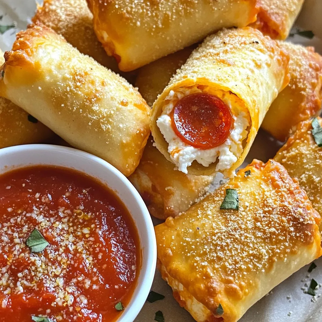 Serve your crispy pizza rolls right away. Pair them with warm marinara sauce for dipping. Arrange them on a platter. You can add fresh basil leaves or a sprinkle of Italian seasoning for a nice touch. Enjoy!