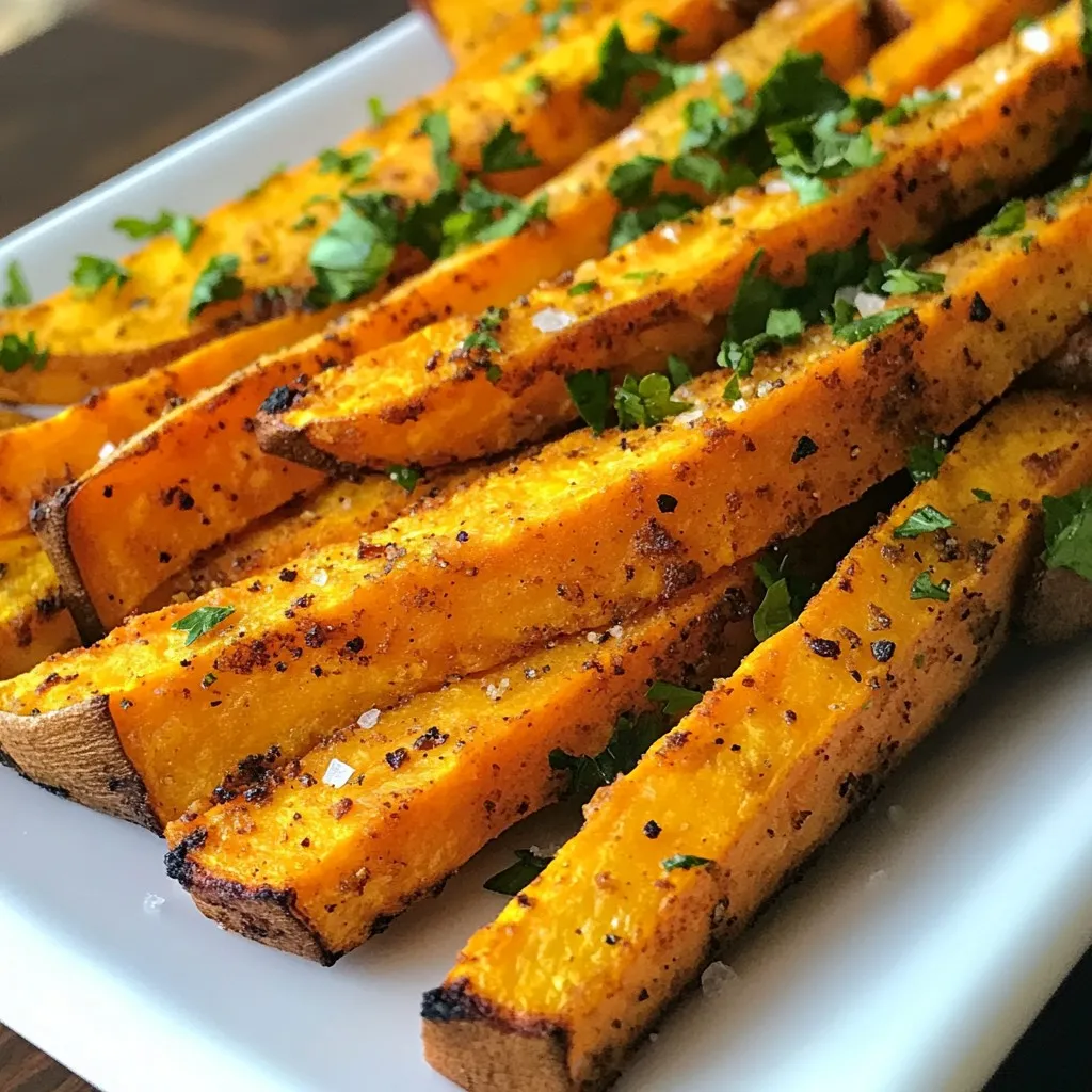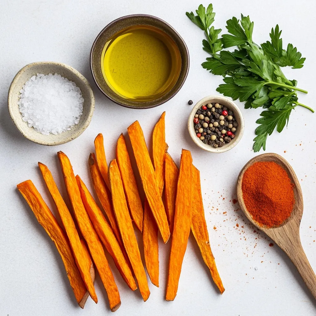 - 2 large sweet potatoes - 2 tablespoons extra virgin olive oil - 1 teaspoon smoked paprika - 1 teaspoon garlic powder - 1 teaspoon onion powder - ½ teaspoon coarse sea salt - ¼ teaspoon freshly ground black pepper - Fresh parsley, finely chopped To make crispy baked sweet potato fries, you need a few simple items. Start with two large sweet potatoes. They should be fresh and firm to the touch. Next, grab some extra virgin olive oil. This oil helps the fries crisp up nicely in the oven. Next, gather your spices. You’ll need smoked paprika for a nice flavor. Garlic powder adds depth, while onion powder gives it a savory touch. Sea salt and black pepper enhance the taste. These spices create a balanced flavor that makes every bite enjoyable. Finally, consider a garnish. Fresh parsley looks great and adds a pop of color. It also brings a fresh taste that complements the fries well. With these ingredients, you are ready to create a tasty snack that everyone will love. {{ingredient_image_2}} Start by peeling your sweet potatoes. A simple vegetable peeler works great. Aim for long, even slices. This helps them cook evenly. If they are too thick, they won’t crisp up well. I like to aim for around 1/4 inch thick. This size makes them tender inside and crispy outside. Next, put the sliced sweet potatoes into a big bowl. Drizzle with olive oil. Make sure every fry gets some oil. Use your hands or a spatula to toss them well. Now, grab a smaller bowl. Mix smoked paprika, garlic powder, onion powder, sea salt, and black pepper. This spice mix adds a nice flavor. Sprinkle it evenly over the fries. Toss again until all fries are coated. Now it’s time to bake! Preheat your oven to 425°F (220°C). This step is key for crispiness. Line your baking sheet with parchment paper. Spread the fries in one layer. Avoid crowding them. This helps each fry get that perfect crunch. Bake them for 25-30 minutes. Flip them halfway through for even cooking. When they are golden brown, they’re ready. Let them cool for five minutes. Before serving, add fresh parsley on top for color. To get the best crispiness from your sweet potato fries, follow these tips: - Layering and spacing on the baking sheet: Spread the fries out in a single layer. Give them space to breathe. If they touch, they will steam, not crisp. - Recommended baking temperatures: Bake at 425°F (220°C). This high heat helps to make the fries crispy and golden. To ensure your fries turn out perfect, watch for these common issues: - Overcrowding the baking sheet: If fries are too close, they won’t crisp up. Use two baking sheets if needed. - Ignoring the halfway flip: Flip the fries halfway through baking. This gives them a nice, even brown color and crispy texture. Pro Tips Cut Evenly: Ensure that your sweet potato fries are sliced uniformly to promote even cooking and crispiness. Soak for Extra Crispiness: Soaking the sweet potato slices in cold water for 30 minutes before baking can help remove excess starch and make them crispier. Don't Overcrowd the Pan: Give your fries space on the baking sheet; overcrowding will trap steam and result in soggy fries. Experiment with Seasonings: Feel free to customize your spice blend with your favorite herbs and spices, such as cayenne for heat or rosemary for an aromatic twist. {{image_4}} You can easily change the flavor of your sweet potato fries. Here are some ideas: - Different spice blends to try: Try using curry powder for a warm taste. You could also add Italian herbs for a fresh flavor. Mix it up! - Adding heat with cayenne pepper: If you like spice, add a pinch of cayenne pepper. This gives a nice kick. Adjust to your taste. You can also use other veggies for fries. Here are some options to explore: - Using other types of potatoes: Regular potatoes work well too. Try russet or Yukon gold potatoes for a classic taste. They also get crispy when baked. - Seasonal vegetable options: Consider using carrots or zucchini. They add a sweet and savory twist. Cut them into fry shapes for fun. To keep your crispy baked sweet potato fries fresh, use airtight containers. Glass or plastic containers work well. Place a paper towel at the bottom to absorb moisture. This helps keep the fries crispy. Make sure the fries are cool before sealing them. Store them in the fridge for up to three days. When it comes to reheating fries, the oven is your best friend. Preheat your oven to 400°F (200°C). Spread the fries on a baking sheet in a single layer. Bake for about 10-15 minutes until they are hot and crisp. Avoid using the microwave, as it can make fries soggy. If you want extra crispiness, try using an air fryer. Just remember to check them often to avoid burning. To make your sweet potato fries crispy, follow these key techniques: - Cut the sweet potatoes into thin, even slices. Thin fries cook better. - Toss the fries in olive oil to coat them well. This helps them crisp up. - Season the fries evenly to add flavor without making them soggy. - Spread the fries out on the baking sheet in a single layer. Avoid crowding. - Flip the fries halfway through baking for even cooking and browning. By using these tips, you will enjoy crispy, delicious sweet potato fries every time. Yes, you can use other oils for baking your fries. Here are some great alternatives: - Avocado oil works well and has a high smoke point. - Coconut oil adds a unique flavor and is great for frying. - Canola oil is a neutral option that works well for baking. Feel free to experiment with different oils to find your favorite flavor! Yes, sweet potato fries are generally healthier than regular fries. Here’s why: - Sweet potatoes are rich in vitamins A and C, which are good for your health. - They have more fiber, which helps with digestion. - Sweet potatoes have a lower glycemic index, which means they raise blood sugar slower. Overall, sweet potato fries can be a tasty and nutritious choice! In this post, I shared how to make perfect sweet potato 