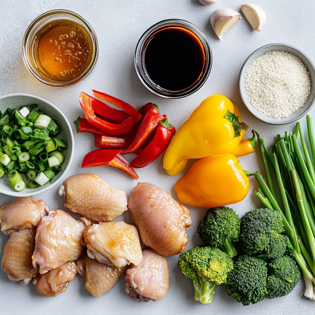 Using boneless, skinless chicken thighs makes the dish tender and juicy. The teriyaki sauce has a mix of soy sauce, honey, rice vinegar, garlic, ginger, and sesame oil. This combination gives a sweet and savory flavor.