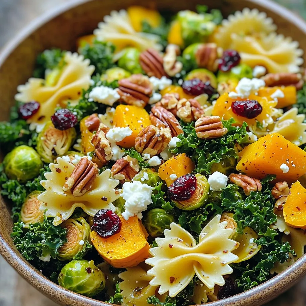 Celebrate the flavors of the season with this delicious Fall Harvest Pasta Salad! Packed with roasted butternut squash, Brussels sprouts, and kale, this colorful dish is bursting with nutrients and taste. Tossed in a tangy maple dressing and topped with feta cheese and crunchy pecans, it’s perfect for any gathering. Discover the full recipe and step-by-step instructions to make this festive salad today! Click through for a taste of fall!