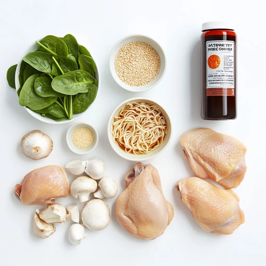 Gather these ingredients first. The chicken thighs give you a rich flavor. Ramen noodles are quick and fun to cook. Chicken broth adds depth and warmth.
