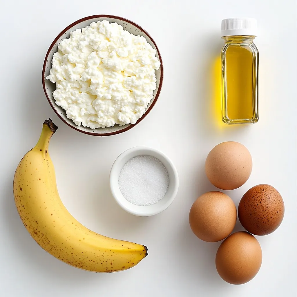 These ingredients form the base of your flourless cottage cheese pancakes. Each one plays a key role. The cottage cheese gives a fluffy texture and adds protein. Eggs bind everything together and make it rise. A ripe banana adds natural sweetness and moisture. Vanilla extract gives a lovely flavor. Baking powder helps the pancakes rise, making them light. A pinch of salt balances the sweet flavors.