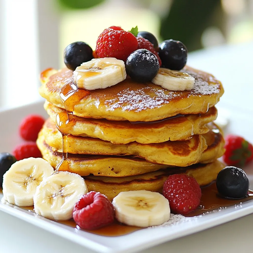 Serve the pancakes warm, with your choice of toppings such as fresh seasonal fruits, drizzles of maple syrup, or a light dusting of powdered sugar.