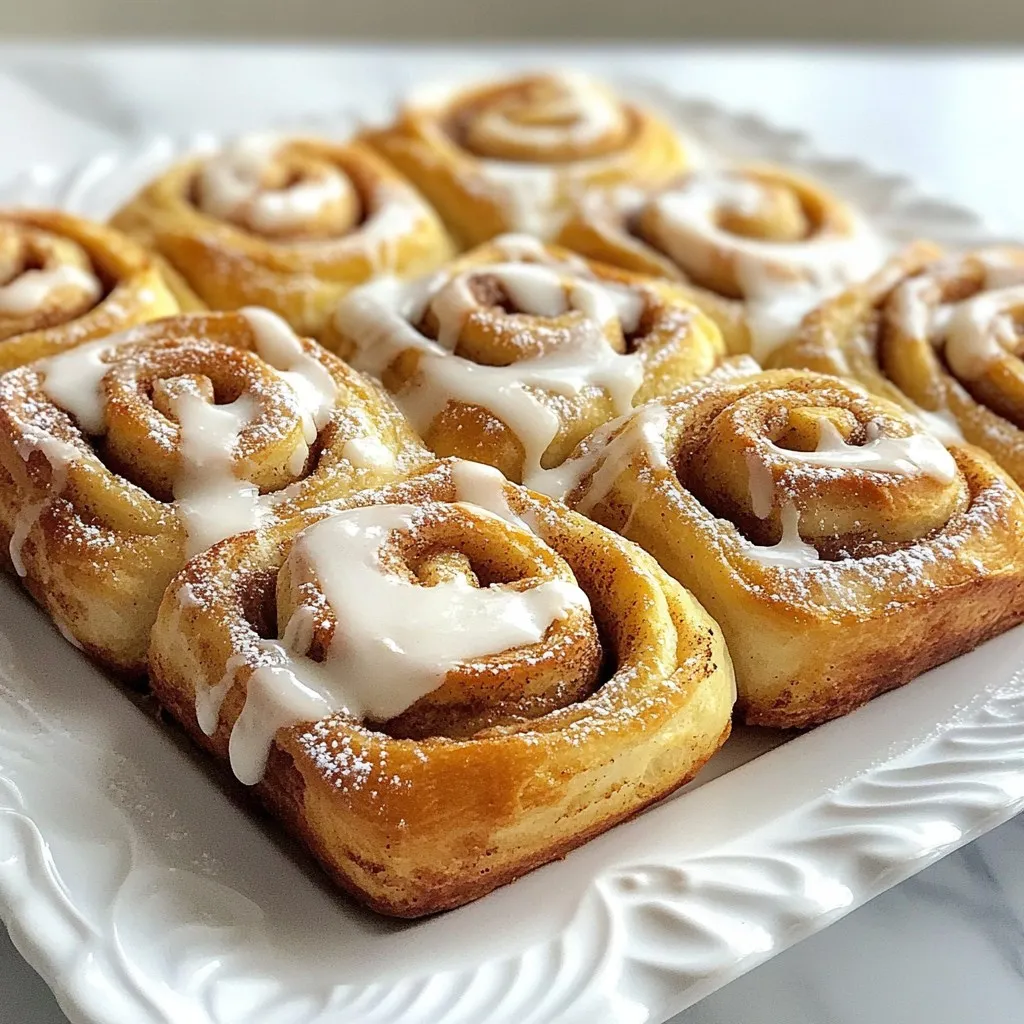 Serve the cinnamon rolls on a large platter, garnished with a sprinkle of extra cinnamon or a light dusting of powdered sugar for an elegant touch.