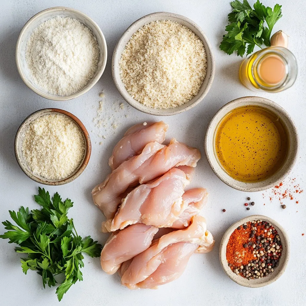 Start by gathering all your ingredients. You need 1 pound of boneless, skinless chicken breast. Cut it into small, bite-sized pieces. This helps them cook evenly. Next, measure out your flour, Parmesan cheese, garlic powder, onion powder, smoked paprika, salt, and black pepper. Place each in separate bowls for easy access. You will also need two large eggs. Beat them until they are fluffy. Finally, get your Panko breadcrumbs ready. They add a great crunch to the bites.