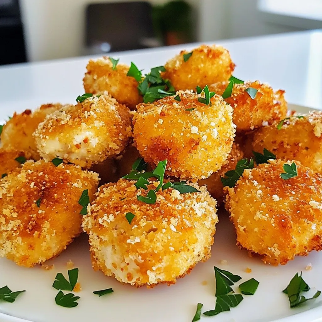 Delicious bite-sized chicken pieces coated in garlic, Parmesan, and breadcrumbs, baked to crispy perfection.