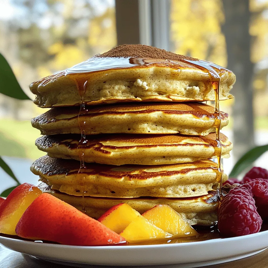 Serve the pancakes warm. You can add fresh fruit, more maple syrup, or a sprinkle of powdered sugar. For a festive touch, dust some extra nutmeg or cinnamon on top. Stack them high on a plate for a beautiful presentation. Enjoy your delightful pancakes!