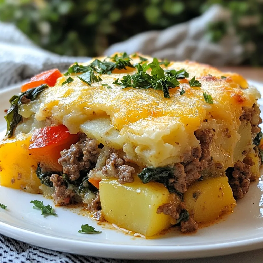 A hearty and flavorful casserole featuring ground beef, vegetables, and cheese, perfect for a comforting meal.