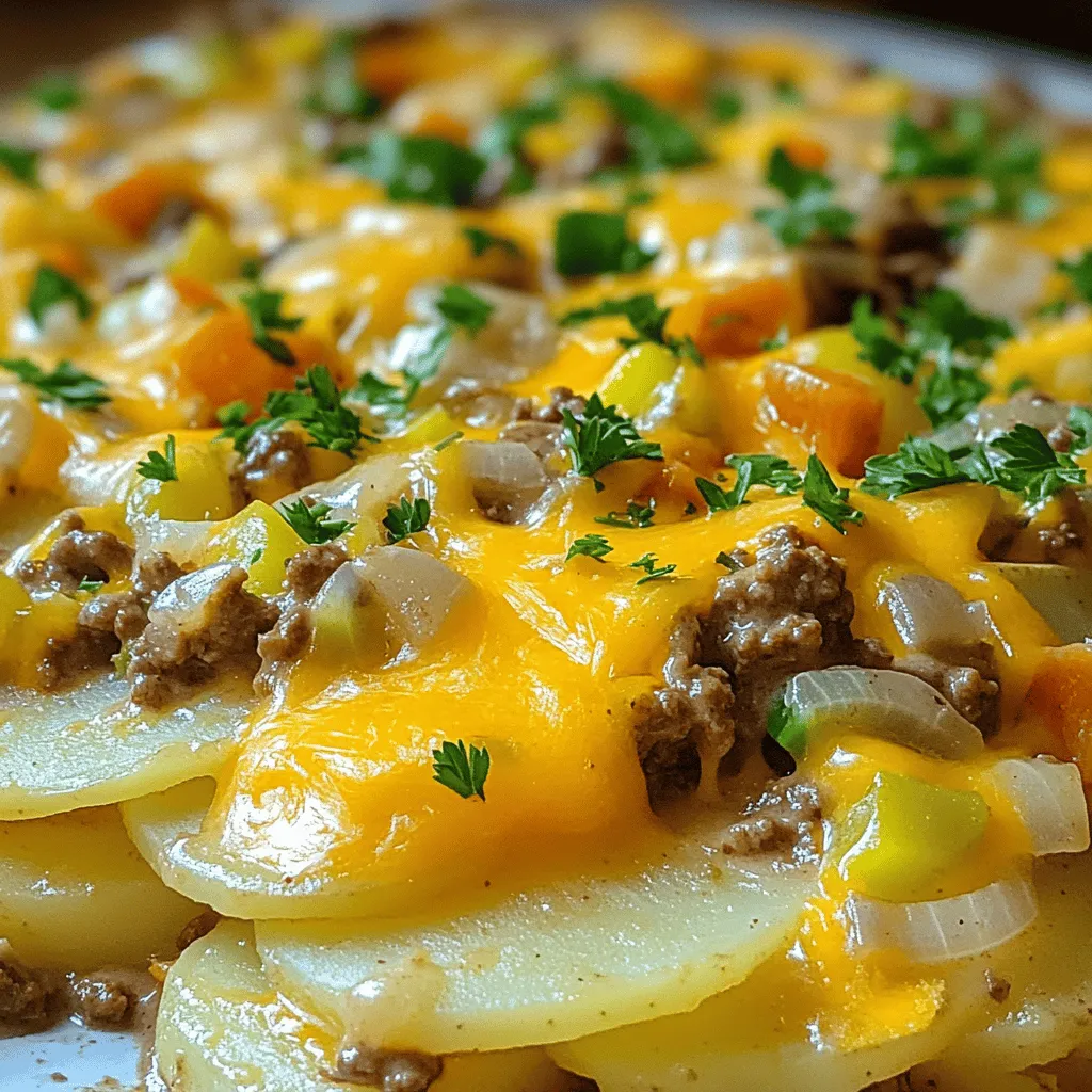 If you don’t have an oven, you can use a stovetop method. Cook the beef and veggies in a large skillet. Layer the potatoes in the skillet, add the soup mixture, and cover. Cook on low heat until the potatoes are soft, about 30-40 minutes.