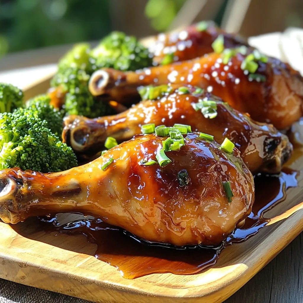 These chicken drumsticks pair well with many sides. Try steamed broccoli, garlic mashed potatoes, or a fresh salad. For drinks, consider iced tea, lemonade, or a light white wine. Each of these options enhances the meal and complements the sweet glaze. Enjoy experimenting with different sides and drinks to find your favorite combinations!