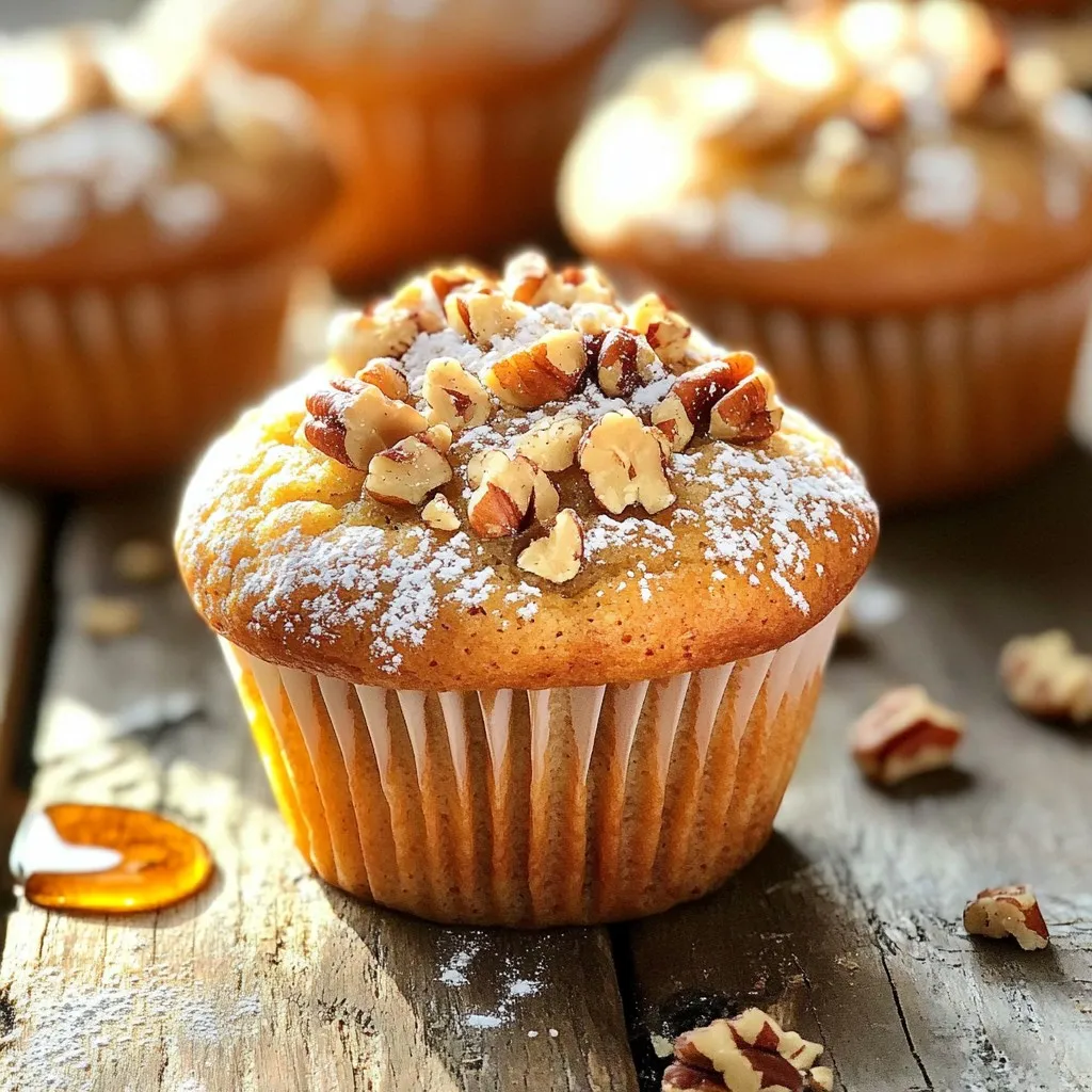 2. Top each muffin with reserved chopped pecans for added crunch.