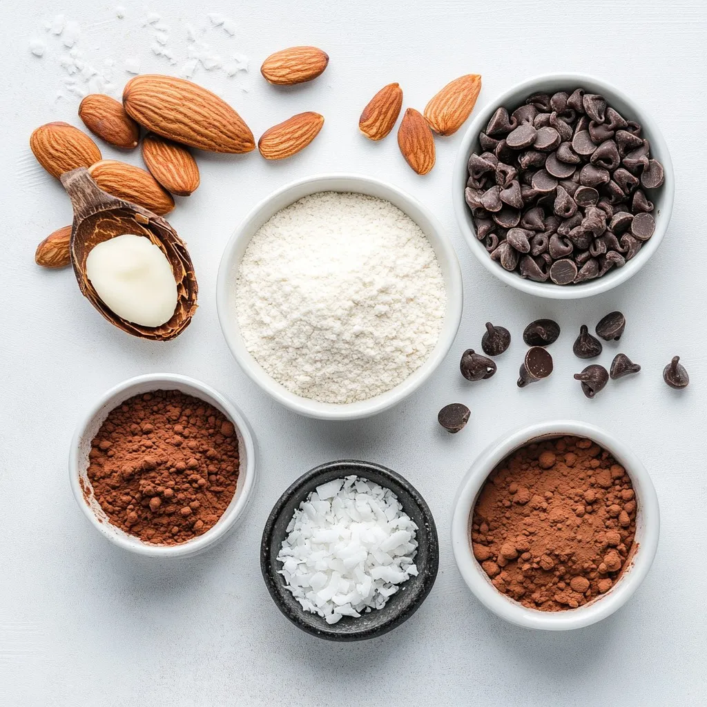 Start by getting a large mixing bowl. Add 1 cup of almond flour. Next, put in 1/2 cup of unsweetened shredded coconut. Then, add 1/4 cup of keto-friendly sweetener, like erythritol or monk fruit. If you want a chocolate flavor, add 1/4 cup of unsweetened cocoa powder. Finally, sprinkle in 1/4 teaspoon of salt. Mix well to ensure even distribution.