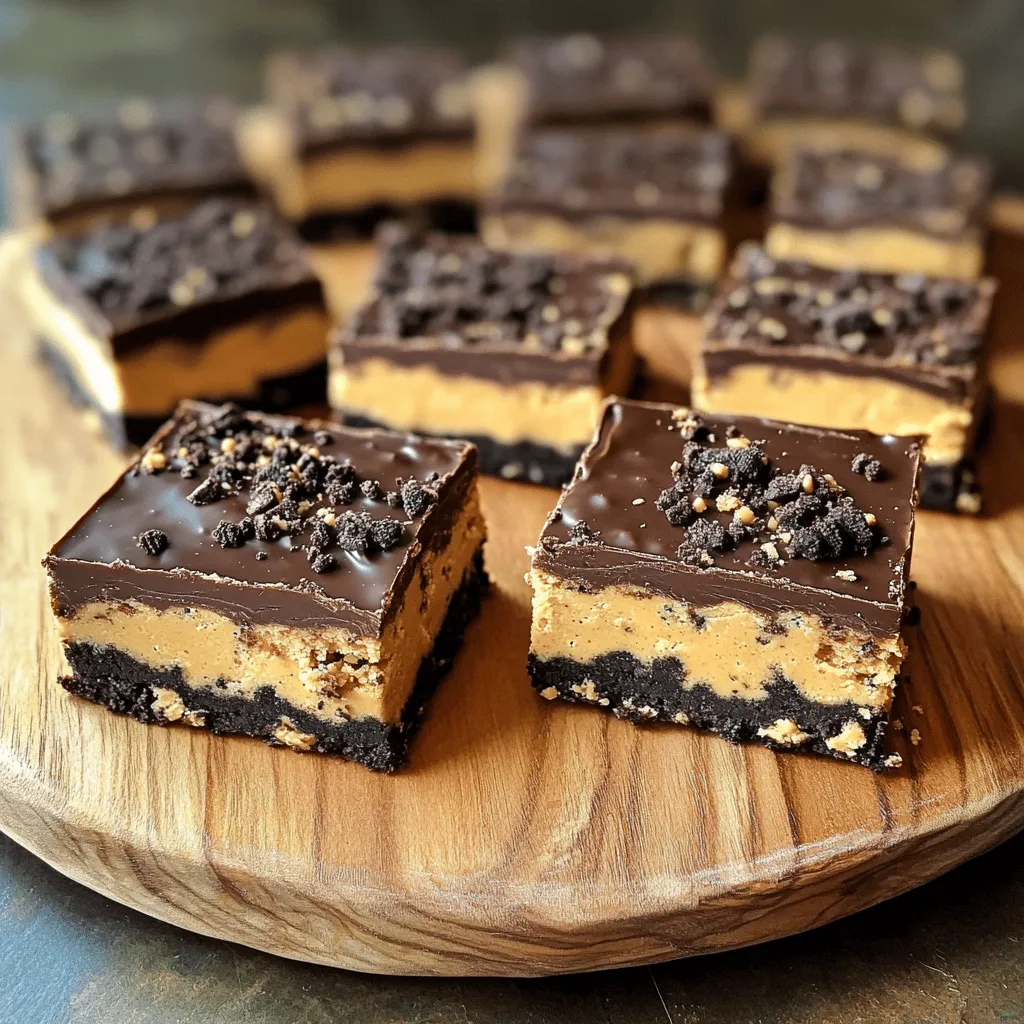 Garnishes and drizzles can enhance the look of your bars. Sprinkle some crushed Oreos on top for a fun texture. A drizzle of extra melted chocolate or peanut butter adds flair. This makes your dessert not just tasty but also beautiful!
