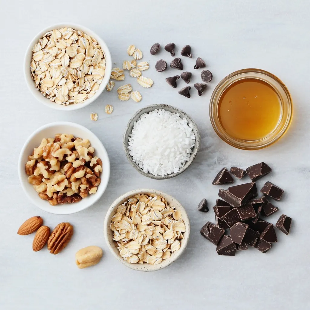 You need these simple ingredients to make the best no-bake protein power balls. Rolled oats serve as the base. They add fiber and help keep you full. Peanut butter or almond butter provides healthy fats and protein. Honey or maple syrup gives sweetness and binds the mix together.