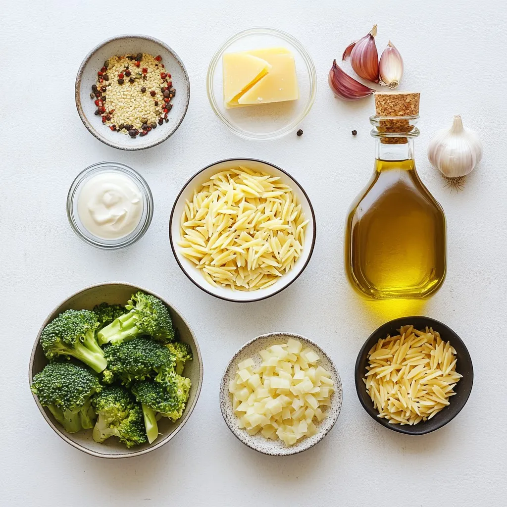 Main Ingredients for One-Pot Broccoli Cheddar Orzo