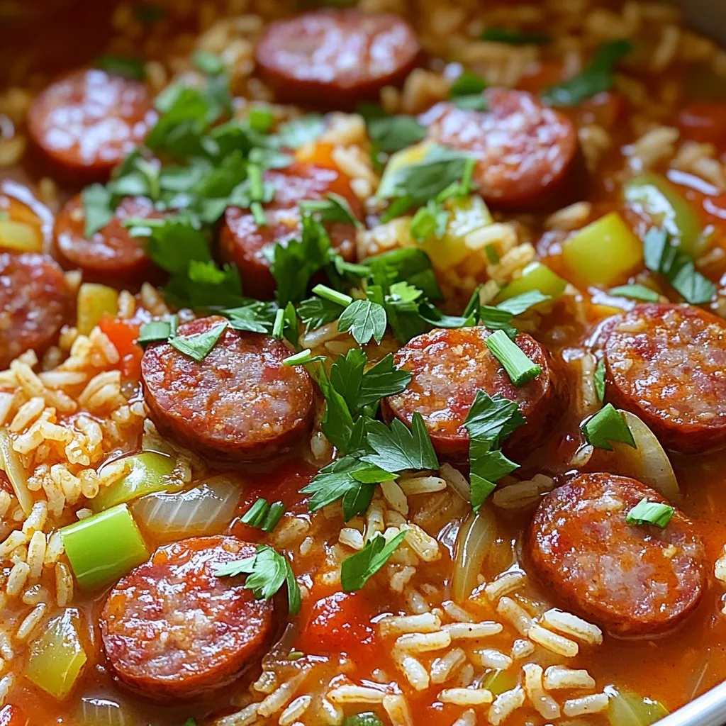 These ingredients combine to create a warm and hearty dish. The sausage gives a spicy kick, while the rice absorbs all those delicious flavors. You will enjoy the balance of spices and the freshness of the veggies. Each bite will transport you to a cozy kitchen, making this dish perfect for any night.