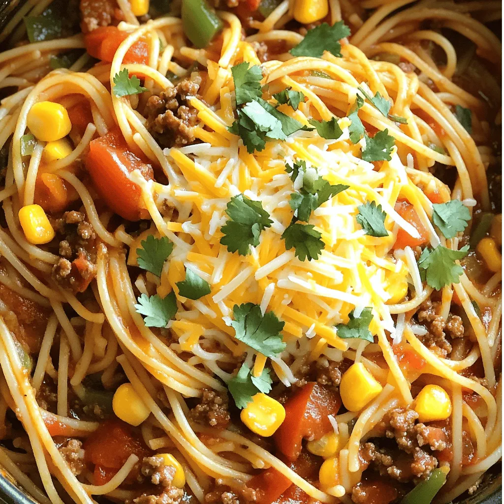 Top your Cowboy Spaghetti with shredded cheddar cheese for creaminess. Fresh cilantro adds color and a burst of flavor. You can serve it with cornbread or a side salad for a complete meal. For a fun cowboy theme, consider adding cowboy beans or grilled corn on the cob.