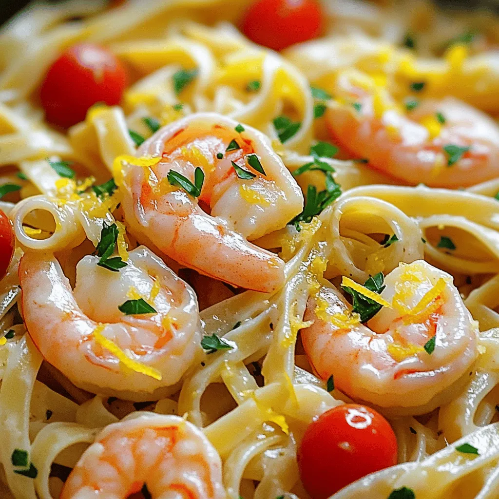To make this One-Pot Creamy Lemon Garlic Shrimp Pasta, you will need the following fresh ingredients: - 8 oz fettuccine or spaghetti - 1 lb large shrimp, peeled and deveined - 4 cups vegetable broth - 1 medium onion, finely chopped - 4 cloves garlic, minced - 1 cup heavy cream - 1 lemon, zested and juiced - 1 cup cherry tomatoes, halved - 1/2 cup grated Parmesan cheese - 2 tablespoons olive oil - 1 teaspoon red pepper flakes (optional for a little heat) - Salt and pepper to taste - Fresh parsley, chopped, for garnish These ingredients come together to create a rich and creamy dish. The shrimp adds protein, while the lemon brightens the flavor. The heavy cream makes the sauce creamy, and the Parmesan cheese gives it an extra kick. Feel free to add the red pepper flakes if you like a bit of spice. This simple yet flavorful list makes cooking easy and fun. Enjoy the process of gathering these items and preparing a delightful meal! 1. Heat olive oil and sauté onions Start by heating 2 tablespoons of olive oil in a large pot or deep skillet over medium heat. Add 1 medium onion, finely chopped. Sauté it for about 3-4 minutes. You want the onion to be soft and clear. 2. Add garlic and shrimp Next, stir in 4 cloves of minced garlic. If you like heat, add 1 teaspoon of red pepper flakes. Cook for 1 more minute. This lets the garlic release its yummy smell. Now, add 1 pound of large shrimp that are peeled and deveined. Cook these for about 2-3 minutes. They should start to turn pink. Season with salt and pepper to taste. 3. Incorporate vegetable broth and pasta Carefully pour in 4 cups of vegetable broth. Bring this to a gentle boil. Once boiling, toss in 8 ounces of fettuccine or spaghetti. Stir it often so it doesn't stick. Cook according to the package instructions, usually about 8-10 minutes. 4. Add cream, lemon, and tomatoes When the pasta is al dente, reduce the heat. Now, mix in 1 cup of heavy cream, the zest and juice from 1 lemon, and 1 cup of halved cherry tomatoes. Stir everything well. Let it simmer gently for 2-3 minutes. This helps the sauce thicken and the tomatoes soften. 5. Stir in Parmesan cheese Take the pot off the heat. Add in 1/2 cup of grated Parmesan cheese. Stir until it melts into the sauce. This will make your dish creamy and rich. Taste your dish and adjust the seasoning if needed. If you want more zing, add a splash of lemon juice. Serve the pasta hot, garnished with fresh parsley for a nice pop of color and flavor. To get the best flavor from your One-Pot Creamy Lemon Garlic Shrimp Pasta, focus on fresh ingredients. Use fresh garlic and vibrant lemons for a bright taste. Sauté the onions until they are soft and sweet. This step builds a great base for your dish. Perfectly cooked shrimp are key. Cook the shrimp just until they turn pink. Overcooking makes them tough and chewy. Aim for 2-3 minutes in the pot. The shrimp will continue to cook slightly when you add the cream and pasta. To enhance your dish, garnish with fresh parsley. It adds color and freshness. You can also sprinkle extra grated Parmesan on top. A lemon wedge on the side gives a nice touch. Pair this meal with a crisp green salad. A light side helps balance the creamy pasta. Garlic bread is another great option for dipping into the sauce. Enjoy your meal with a glass of white wine if you like! {{image_4}} You can easily change the pasta in this dish. If you need a gluten-free option, use brown rice pasta or quinoa pasta. Both work well and keep the dish tasty. You can also switch proteins. Instead of shrimp, try chicken or tofu. Cook chicken pieces the same way as shrimp. If you choose tofu, use firm tofu and sauté until golden. Both options will bring a new twist to your meal. To boost the dish's flavor, add fresh herbs like basil or thyme. These herbs can bring a fresh taste that pairs well with lemon. You can also sprinkle in some Italian seasoning for more depth. Adjust the creaminess by adding more or less heavy cream. If you want a lighter dish, use half-and-half instead of cream. You can also skip the cream entirely and use a splash of pasta water to help the sauce stick to the noodles. To store your One-Pot Creamy Lemon Garlic Shrimp Pasta, follow these steps: - Cool the dish: Let it sit at room temperature for about 30 minutes. - Use airtight containers: Transfer the pasta into a container that seals tightly. This keeps it fresh. - Label the container: Include the date you stored it. In the fridge, this dish stays good for 3 to 4 days. After that, the shrimp may lose its taste and texture. When you're ready to enjoy your leftovers, follow these tips for the best results: - Stovetop method: Place your pasta in a pan over medium heat. Add a splash of broth or cream to keep it creamy. Stir often until heated through. - Microwave method: Put the pasta in a microwave-safe bowl. Cover it with a damp paper towel. Heat for 1-2 minutes, stirring halfway. This keeps the pasta from drying out. These methods help maintain the creamy texture and rich flavors of your dish. Enjoy your meal again just as much as the first time! Yes, you can make this dish ahead of time. Cook the pasta and shrimp as directed. Let it cool, then store it in an airtight container in the fridge. When ready to eat, just reheat it on the stove over low heat. Add a splash of broth or cream to help it stay creamy. To make this dish spicier, simply add more red pepper flakes. Start with a little extra, then taste it. If you want more heat, keep adding until you reach your desired spice level. You can also add some chopped fresh chili peppers for a fresh kick. If you want to substitute heavy cream, use half-and-half or whole milk. They will change the texture slightly but still work well. For a lighter option, try using unsweetened almond milk or coconut milk. Keep in mind that these will alter the flavor a bit. This blog post showed you how to create a delicious dish with shrimp and pasta. We covered the key ingredients, step-by-ste