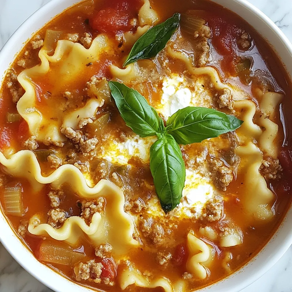 A comforting and hearty lasagna soup made in one pot, perfect for a cozy meal.
