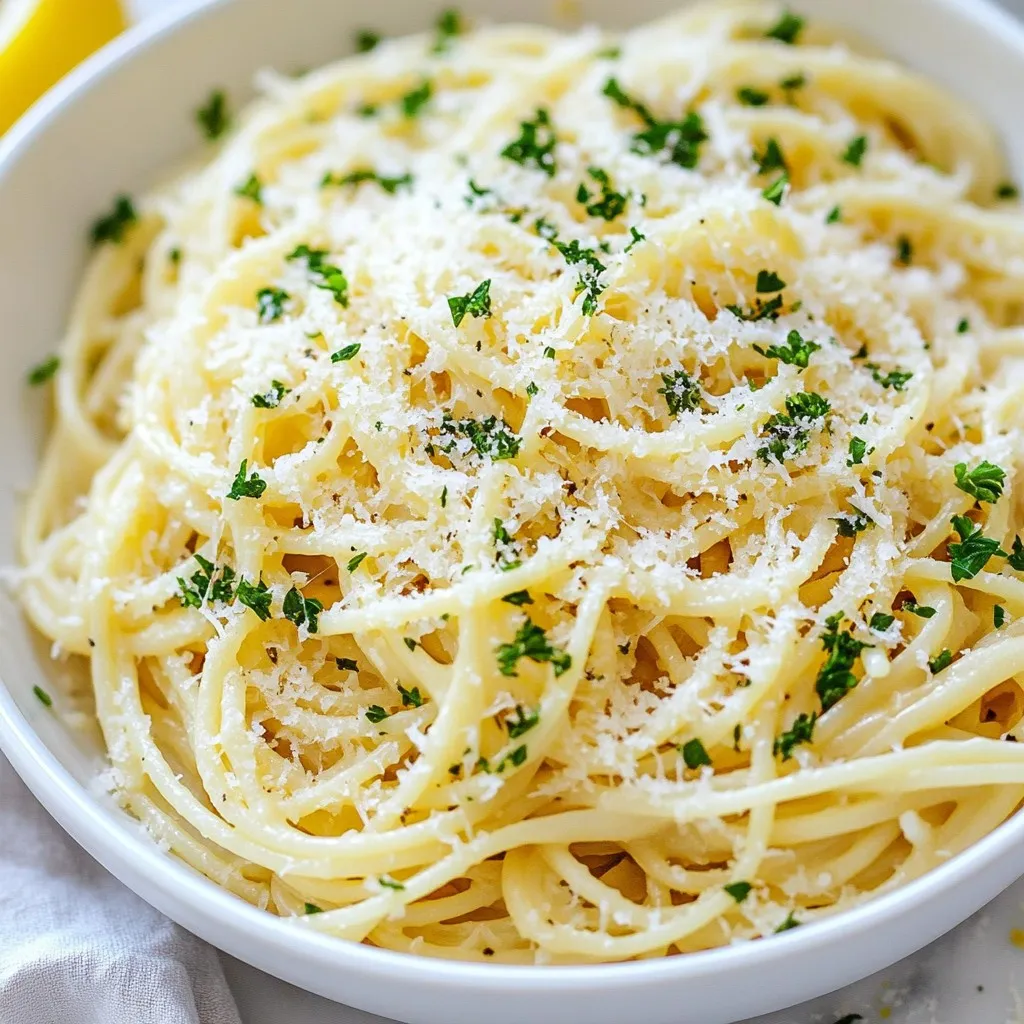 - 8 oz spaghetti or linguine - 4 tablespoons unsalted butter - 4 cloves garlic, minced - 3 cups vegetable broth (or chicken broth for richer flavor) To start, you'll need a base of pasta. I love using 8 ounces of spaghetti or linguine for this dish. You can choose your favorite type. Next, we need 4 tablespoons of unsalted butter. It adds a rich flavor that makes this meal shine. Don't forget the star of the show: 4 cloves of minced garlic. It gives our dish that deep, savory taste. Finally, we use 3 cups of vegetable broth or chicken broth. The broth adds moisture and flavor as the pasta cooks. - 1 cup heavy cream - 1 cup freshly grated Parmesan cheese For creaminess, we need 1 cup of heavy cream. It gives the sauce a smooth texture. The final touch is 1 cup of freshly grated Parmesan cheese. This cheese melts beautifully and adds a salty, savory layer to our dish. - 1 teaspoon dried Italian herbs - Salt and pepper to taste - Fresh parsley, chopped - Lemon zest (optional) To boost flavor, we add 1 teaspoon of dried Italian herbs. This mix of oregano, basil, and thyme works wonders. Salt and pepper are key to enhancing the taste. Use these to your liking. For a bright finish, we sprinkle chopped fresh parsley on top. If you want a zesty twist, add lemon zest as a refreshing option. These ingredients come together to create a simple yet rich meal. Enjoy cooking! {{ingredient_image_2}} Start by melting the butter in a large skillet over medium heat. Let it bubble gently. Next, add the minced garlic. Sauté it for about 1-2 minutes. You want it fragrant, but not browned. Browning can make the garlic taste bitter. After that, pour in the vegetable or chicken broth. Stir it in and bring the mixture to a gentle simmer. Once the broth simmers, add the uncooked spaghetti or linguine. Make sure the pasta is fully submerged in the broth. If needed, press it down gently. Cook the pasta uncovered for about 10-12 minutes. Stir occasionally to keep it from sticking. You want the pasta to be al dente, with most of the liquid absorbed. When the pasta is ready, reduce the heat to low. Stir in the heavy cream and freshly grated Parmesan cheese. Mix until the sauce is smooth and creamy. Add the dried Italian herbs. Season with salt and freshly ground black pepper to taste. For a bright hint, add lemon zest if you like. Take the skillet off the heat and let it rest for a couple of minutes. This helps the sauce thicken. Before serving, garnish with chopped fresh parsley for a pop of color. When you make One-Skillet Garlic Parmesan Pasta, the broth is key. I suggest using vegetable broth for a light taste. If you want more richness, chicken broth works great too. Adjust the salt and pepper to fit your taste. Taste as you go, and feel free to add more herbs if you like. To get that perfect al dente pasta, watch your cooking time closely. Stir the pasta often while it cooks. This helps it cook evenly and prevents sticking. Cooking it uncovered allows the liquid to absorb better. Serve your pasta in deep bowls for a warm look. Add a sprinkle of extra Parmesan on top for a nice touch. Chopped fresh parsley adds color and freshness. A lemon wedge on the side brightens both the dish and your plate. Pro Tips Use Fresh Ingredients: For the best flavor, always use fresh garlic and high-quality Parmesan cheese. Fresh ingredients elevate the dish's overall taste. Don't Overcook the Pasta: Since the pasta continues to cook in the sauce after being removed from heat, aim for al dente to avoid mushy pasta. Experiment with Broth: Try different types of broth like mushroom or beef for unique flavor profiles. Each will bring a different dimension to your pasta dish. Customize Your Herbs: Feel free to mix in your favorite herbs or spices to tailor the dish to your taste. Fresh herbs can also enhance the flavor significantly. {{image_4}} You can easily make this dish heartier by adding protein. Chicken or shrimp works well. To use chicken, cook diced pieces in the skillet before adding garlic. This way, the chicken absorbs the flavors. For shrimp, add them when the pasta is almost done. They cook quickly and add a nice touch. If you prefer a meat-free option, think about adding vegetables. Spinach, bell peppers, or zucchini can add color and nutrition. Just sauté them with the garlic to keep the flavors balanced. Want to switch things up? Try different cheese blends. Mozzarella or asiago can change the taste. Mixing cheeses gives a rich, creamy feel. You can also experiment with spices. A pinch of red pepper flakes can add a bit of heat. Paprika or smoked paprika can also bring a new depth of flavor. If you need gluten-free options, choose gluten-free pasta. Rice or corn-based pasta works well in this recipe. Make sure to check the cooking time, as it may differ from regular pasta. For those who need dairy-free options, use coconut cream instead of heavy cream. Nutritional yeast can replace Parmesan cheese for a cheesy flavor without dairy. These swaps help you enjoy this dish while meeting dietary needs. To store leftover pasta, let it cool first. Place it in an airtight container. This keeps it fresh. I recommend using glass or BPA-free plastic containers. They seal well and help keep flavors intact. For reheating, I suggest using the stovetop. This method keeps the pasta creamy. Just add a splash of water or broth when reheating. Stir it gently over low heat until warm. You can use a microwave, too. Place the pasta in a microwave-safe bowl. Cover it with a damp paper towel. Heat it in short intervals, stirring in between. This helps it heat evenly. You can freeze garlic parmesan pasta if you want. Just make sure it’s fully cooled first. Use freezer-safe containers or bags. Squeeze out as much air as you can. This helps prevent freezer burn. When you’re ready to thaw, place it in the fridge overnight. For quick thawing, you can use the microwave. Heat it gently to keep the sauce creamy. Avoid reheating too much, as it ca