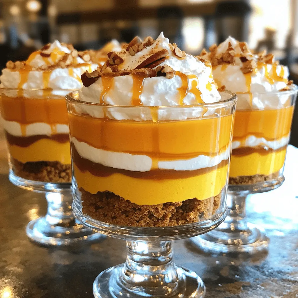 Layering is key to a good trifle. Start with graham cracker crumbs at the bottom of each glass. This base adds texture and flavor. Next, spoon in the pumpkin cream mixture. Spread it evenly for a nice look. Drizzle caramel sauce over the pumpkin layer. Repeat this process. Add more graham cracker crumbs and pumpkin cream until each glass is full. Finish with a layer of pumpkin cream on top. This creates a beautiful finish.
