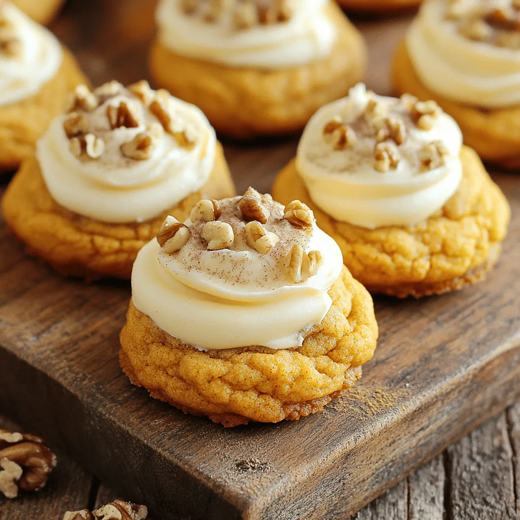 Spices like cinnamon and nutmeg give that cozy fall flavor. If you want a little crunch, add walnuts. The cream cheese frosting adds a tangy sweetness that perfectly complements the cookies. For the full recipe, check the instructions above. Enjoy baking!