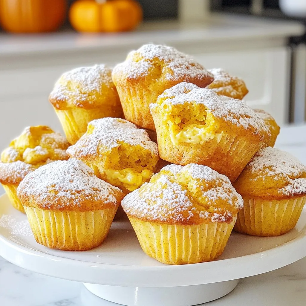 Deliciously moist muffins filled with a creamy pumpkin spice cream cheese center, perfect for autumn.