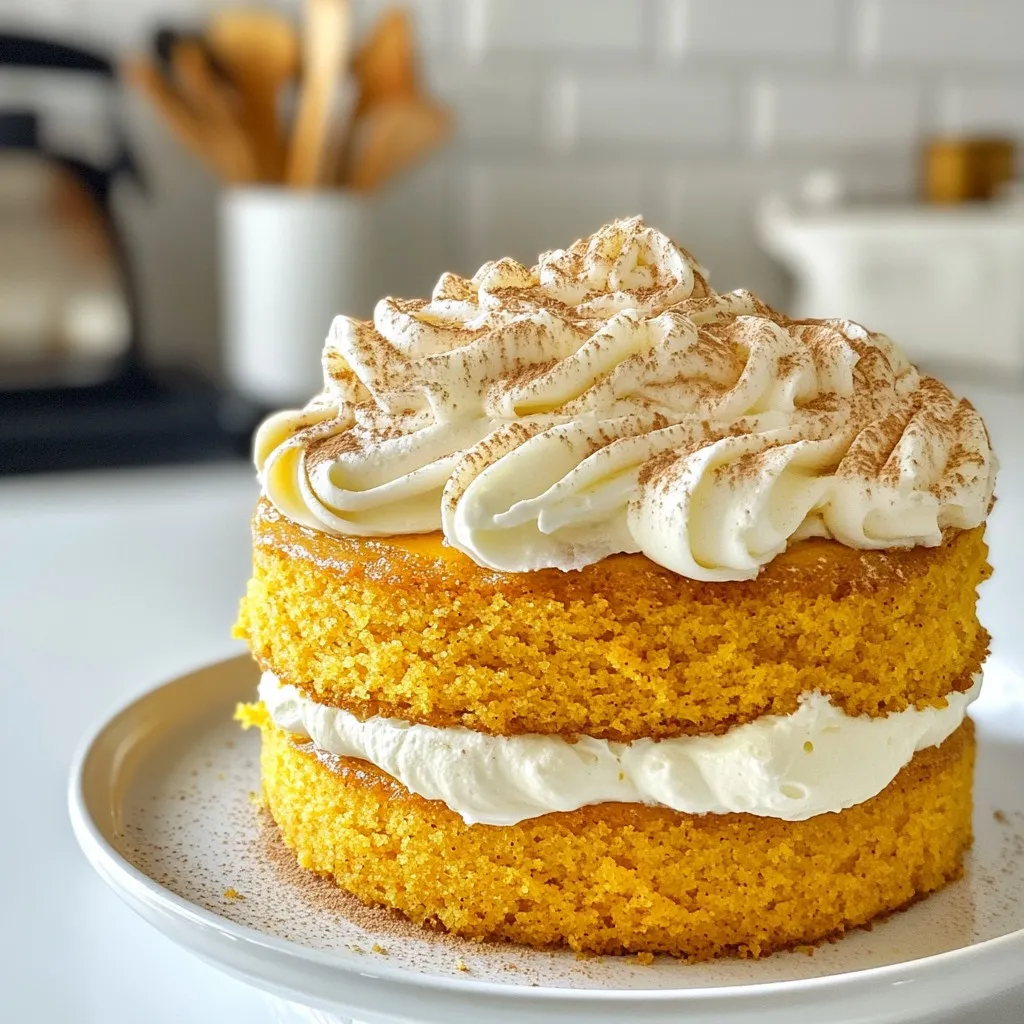A moist and flavorful cake infused with pumpkin and warm spices, topped with cream cheese frosting.