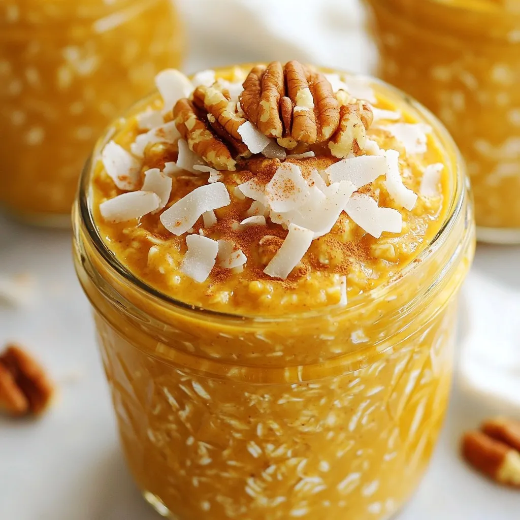 A creamy and flavorful overnight oats recipe infused with pumpkin and warm spices, perfect for a quick breakfast.