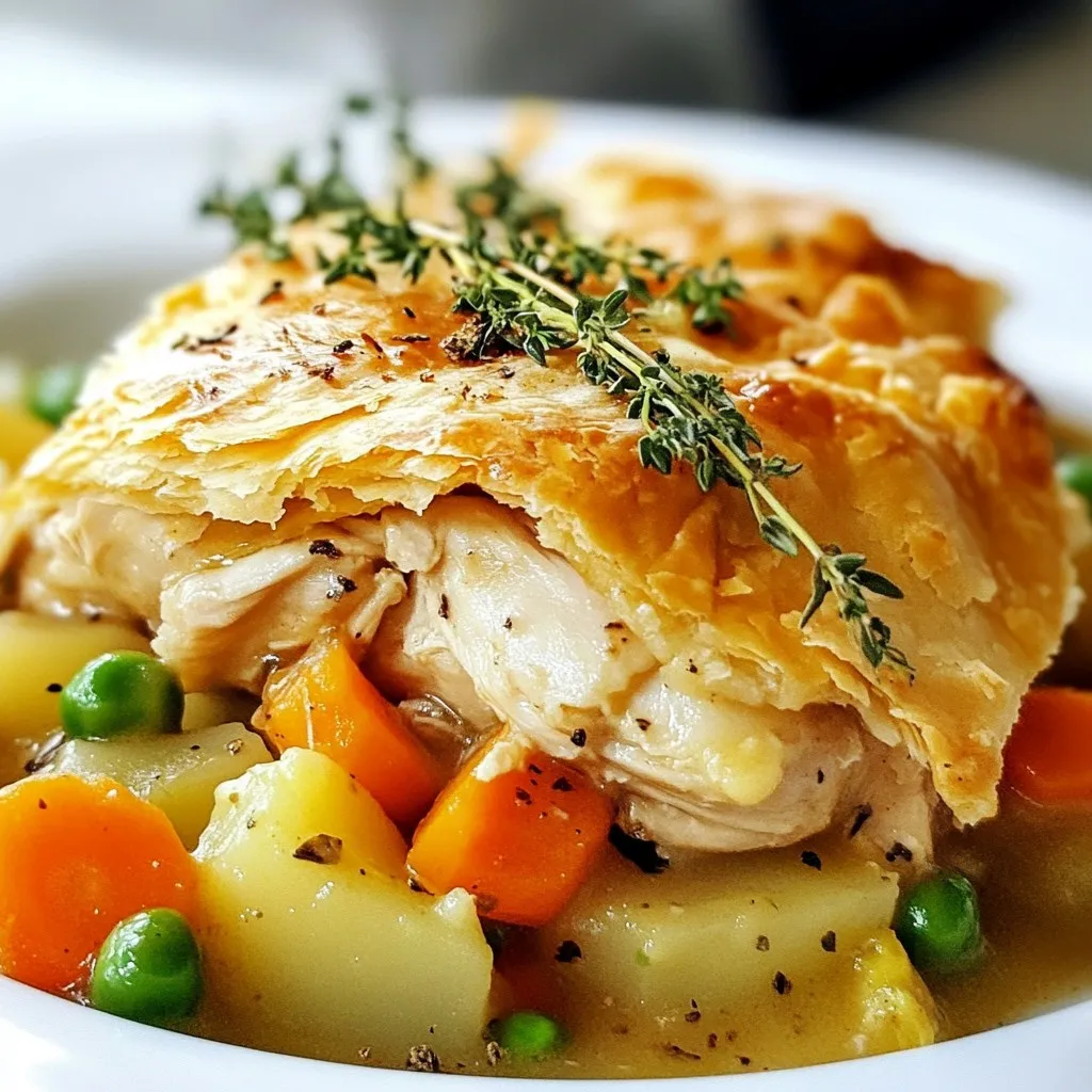 Presentation elevates your chicken pot pie. After baking, sprinkle fresh thyme or chopped parsley on top. This adds color and a fresh taste.
