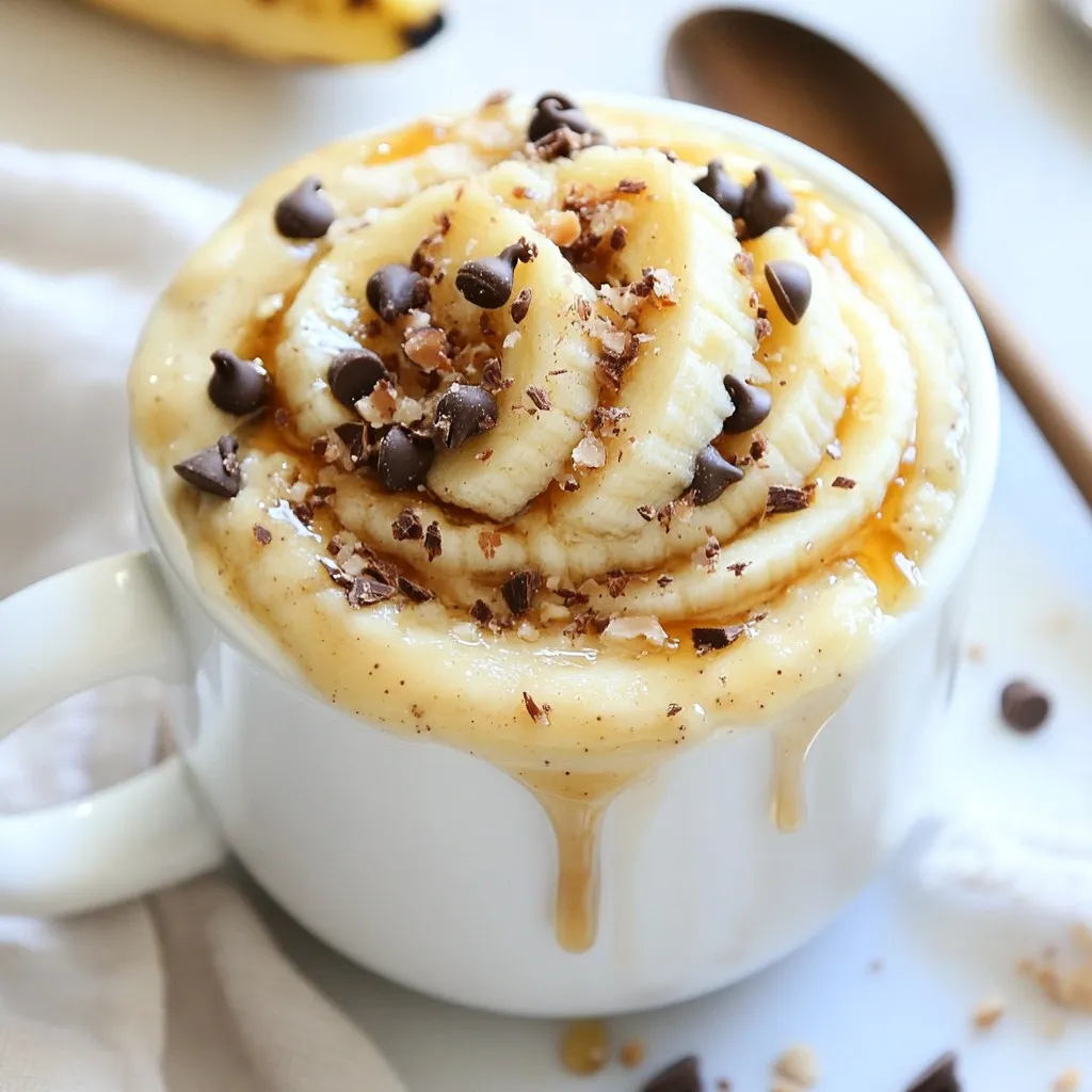 Allow the mug cake to cool for about a minute after microwaving before enjoying. Feel free to top your warm cake with sliced bananas, a sprinkle of nuts, or a few extra chocolate chips for a delightful finish.
