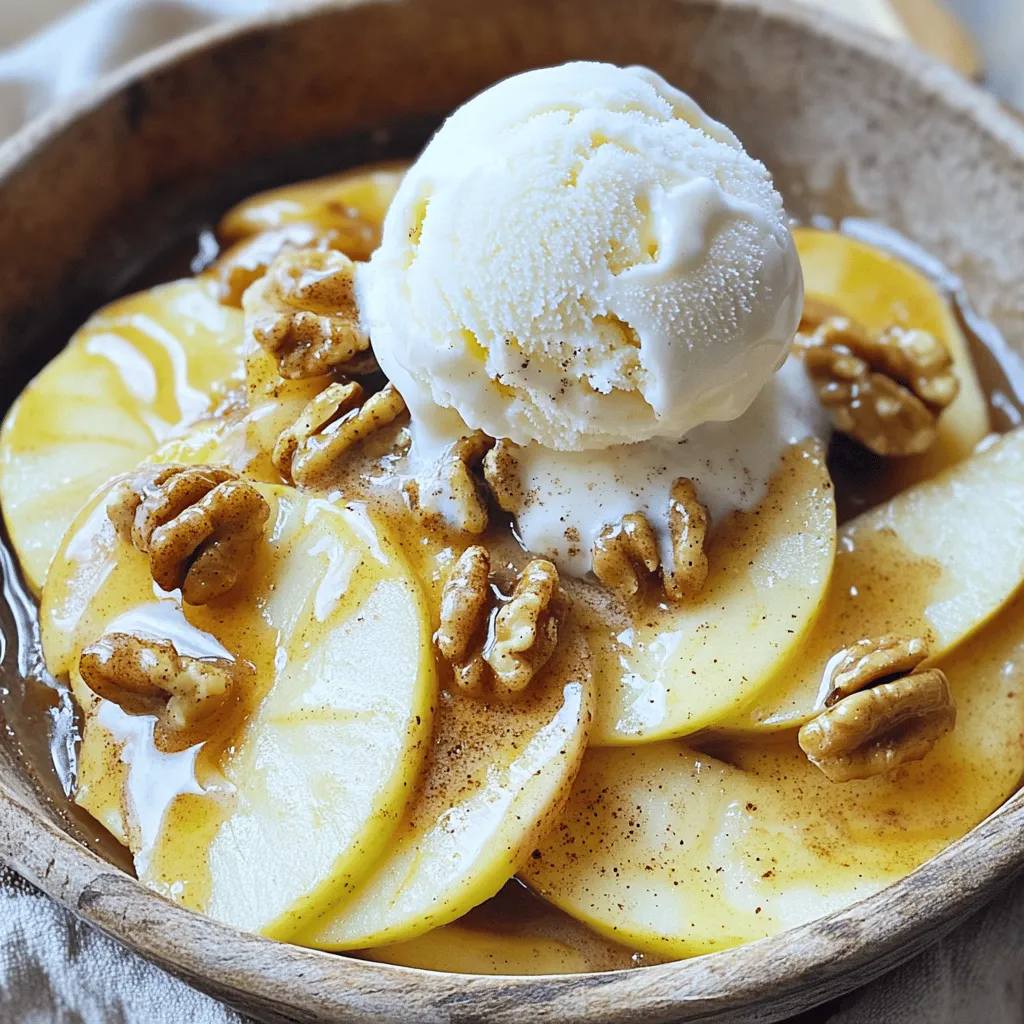 Serve the apples warm, topped with ice cream if you wish. Enjoy the delightful mix of flavors and textures!