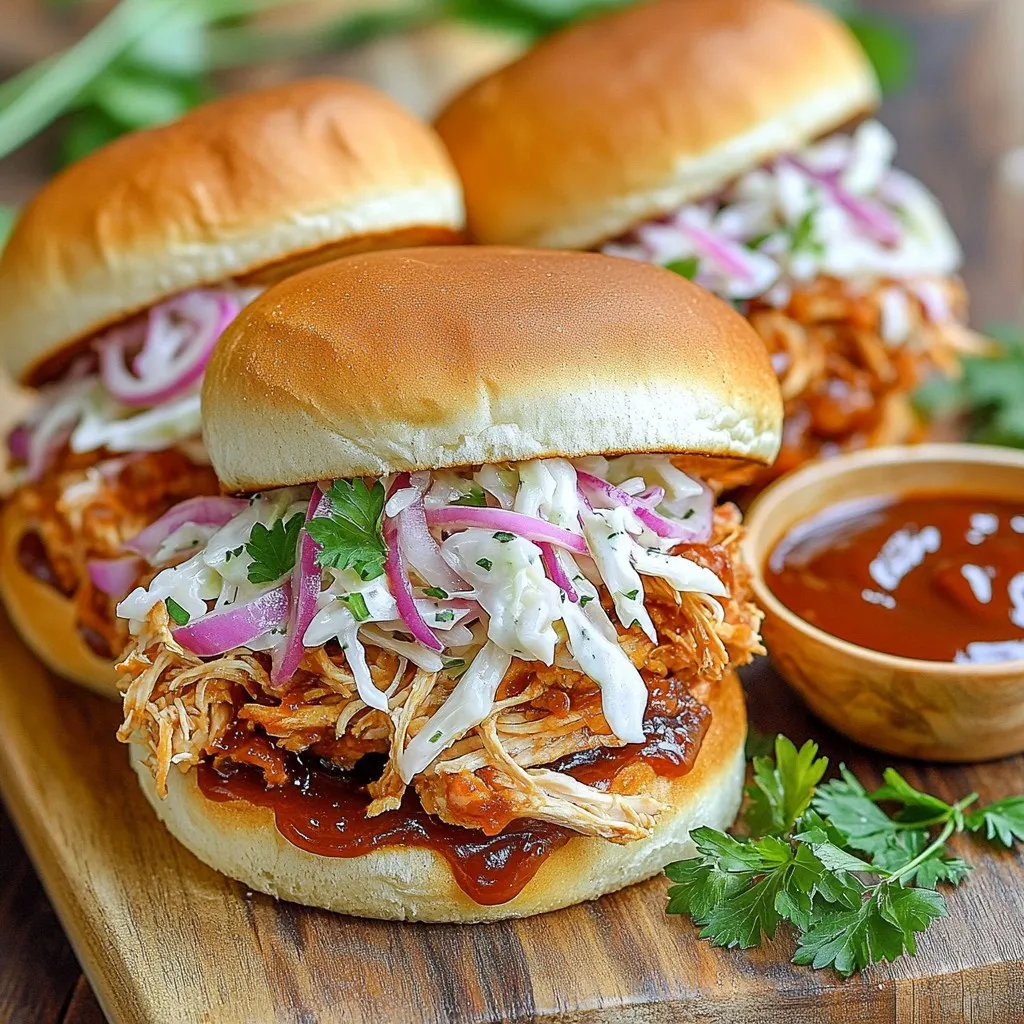 For a great presentation, serve the sandwiches on a rustic wooden board. Add a small bowl of extra BBQ sauce for dipping. Garnish with chopped parsley for color. This makes the meal feel special. Great sides to serve include potato chips or baked beans. They add a nice crunch and complement the meal.