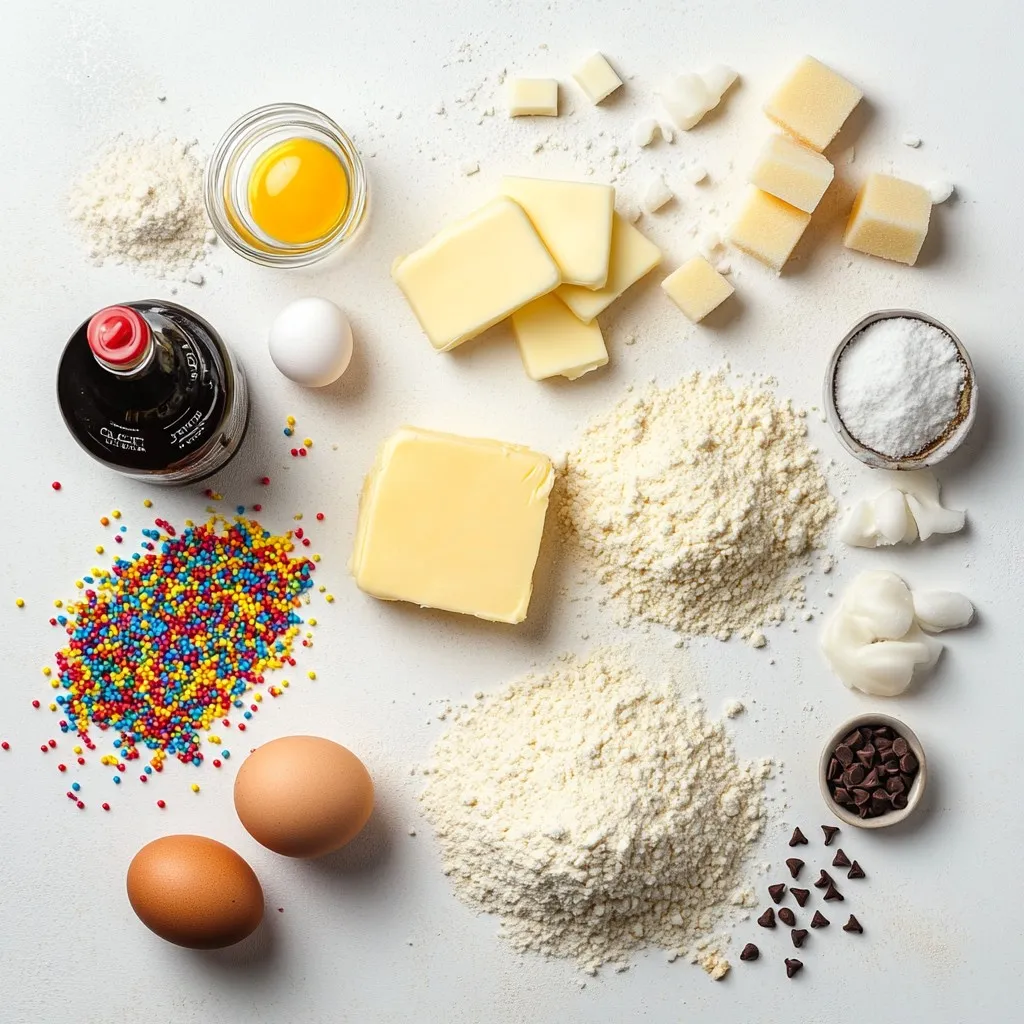 Soft Funfetti Cookies start with simple ingredients that create a magical treat. First, the butter gives a rich flavor and helps the cookies stay soft. Use unsalted butter, as it lets you control the salt better.